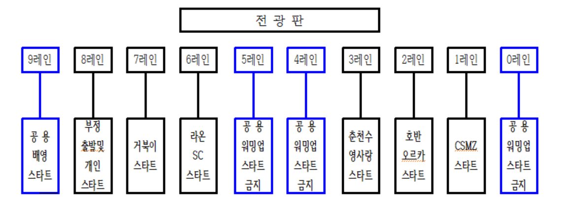 가. 전광판쪽 수심이 낮아 스타트연습 불가, 0번레인 수위조절판 설치로 스타트불가